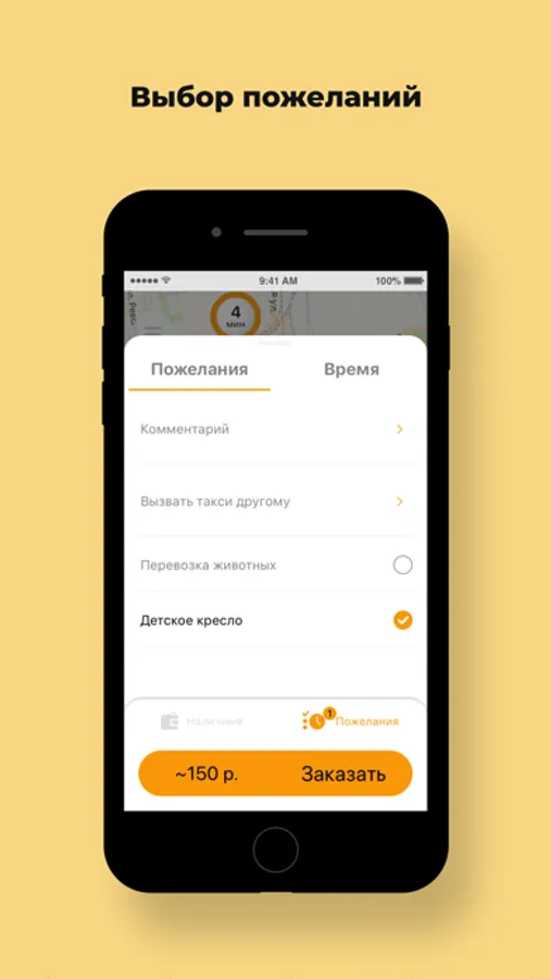 Перед поездкой Вы можете указать дополнительные опции для экипажа. Если у Вас есть пожелания, выбирайте сервис из представленных вариантов: детское кресло, перевозка животных.