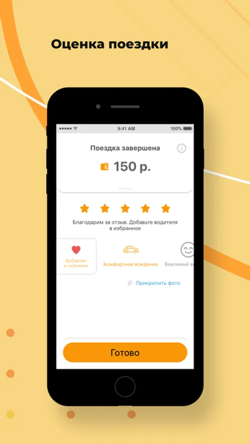 Марка, номер, цвет, время прибытия такси и предварительная цена известны заранее. После завершения поездки Вы можете ознакомиться с длительностью, расстоянием и итоговой стоимостью, а также оставить свой комментарий в оценку поездки.