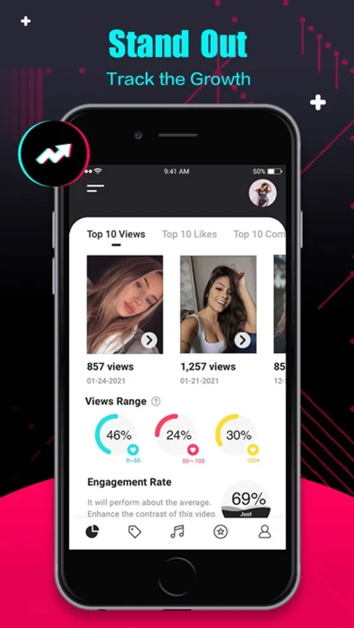 This is an app equipped with its powerful dashboard designed specifically for TikTok. It offers valuable insights into your follower base and useful metrics and stats regarding your own account. The app provides crucial insight into your account growth, likes, followers, and more.