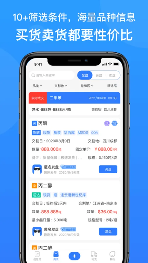 、价格与数量、交割方式、规格等多维度查询方式快速定位所需商品,提供