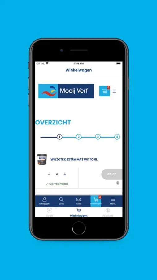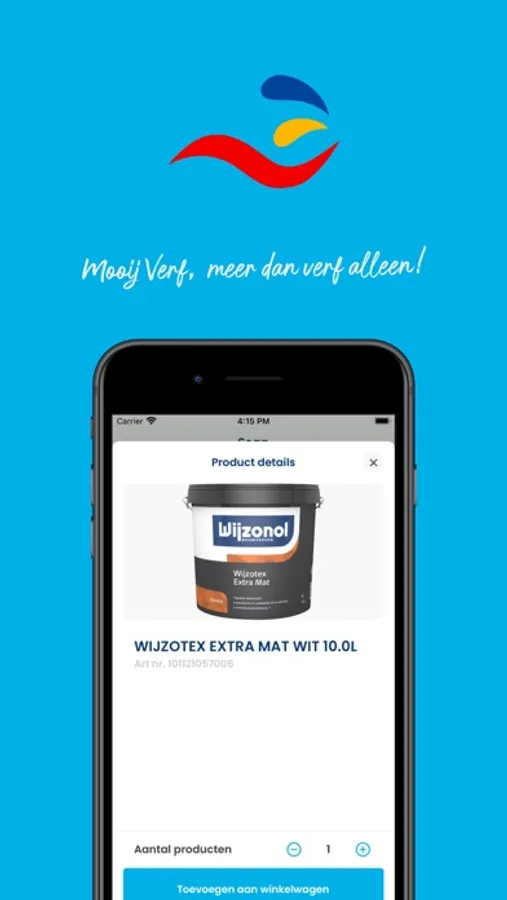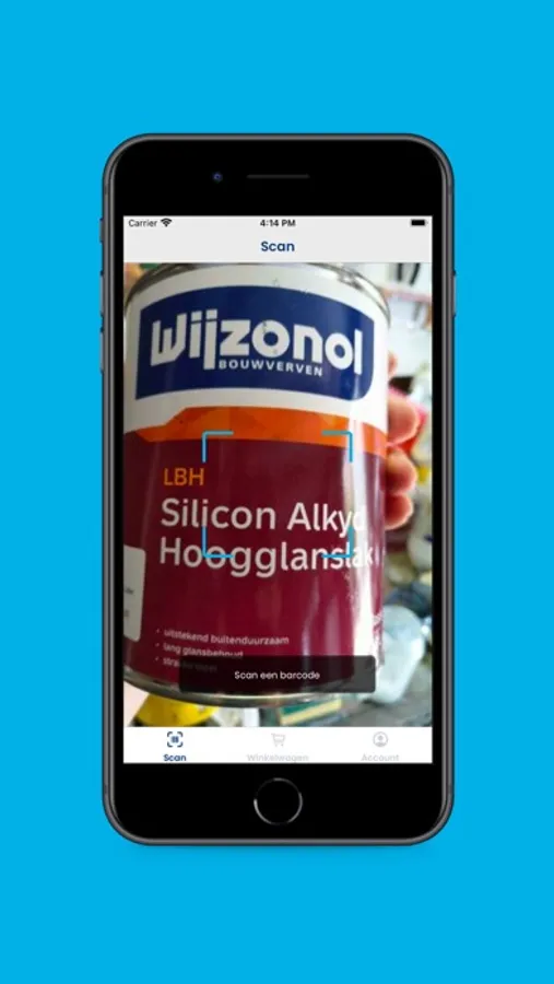 Met de Mooij Verf productscanner app kunnen vakschilders en retailers eenvoudig producten bestellen. Voor het plaatsen van een bestelling heb je een account van Mooij Verf nodig.