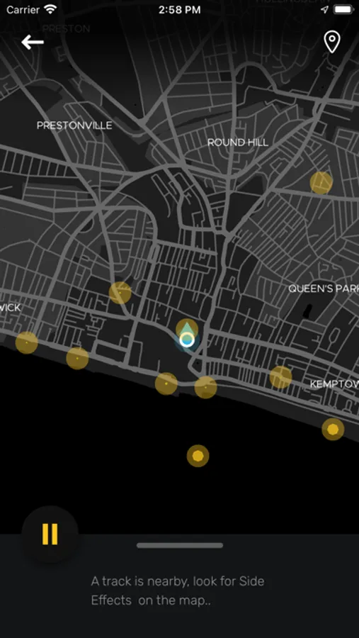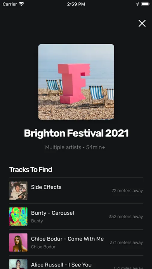 Songs are placed around the city, town or landscape and can be discovered & listened to by users using your phone and headphones.