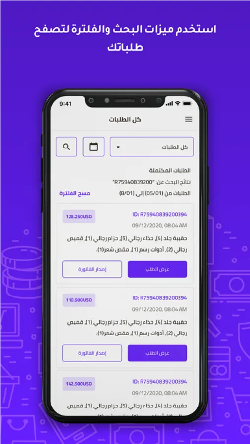 The ability to search for your online store’s orders by order number or client’s name, or filter them out using the order’s date.