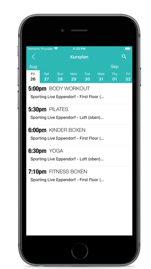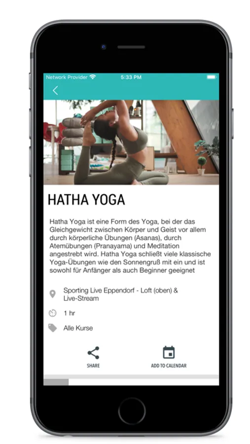 Yoga, Step oder Body Workout – Du hast Lust auf Bewegung, weißt aber nicht, welche Kurse heute im Programm sind? Dafür hast Du nun die Sporting Live-App. Halte die aktuellen Gruppenkurs-Pläne stets griffbereit und mache spontan mit oder plane, welche Kurse am besten in Deinen persönlichen Zeitplan passen. Du weißt nicht, was hinter den Kursnamen steckt? Keine Sorge, neben Details wie Zeit und Ort des Kurses, kannst Du auch Kurzbeschreibungen einsehen und Dich dann für Deinen Lieblingskurs entscheiden.