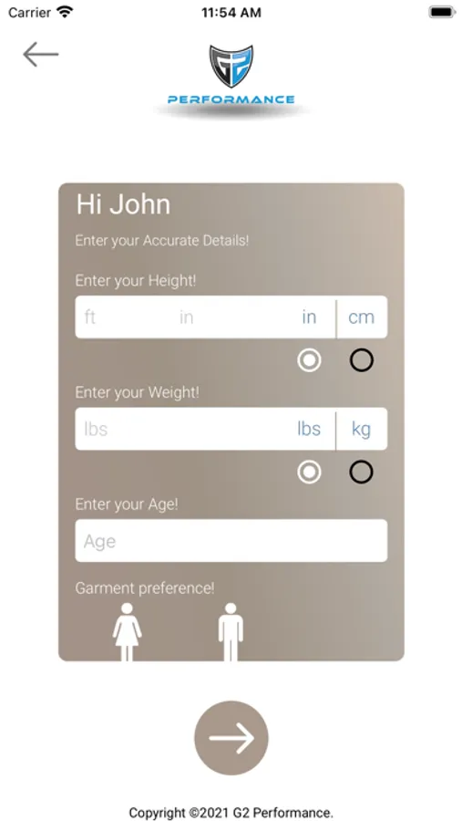 Welcome to G2 Performance. This is a free app to assist in accurate garment sizing.