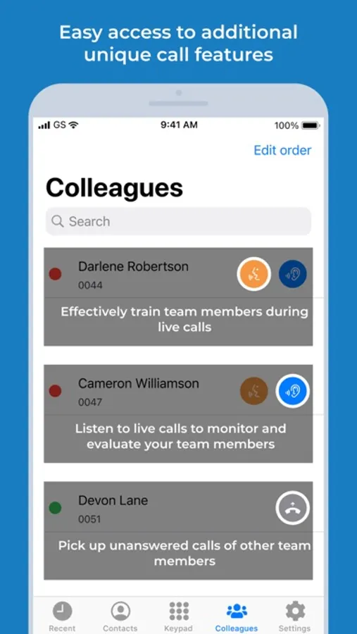 Transfer a call to any of your co-workers with a single click. Know who’s available and who’s not before transferring the call.