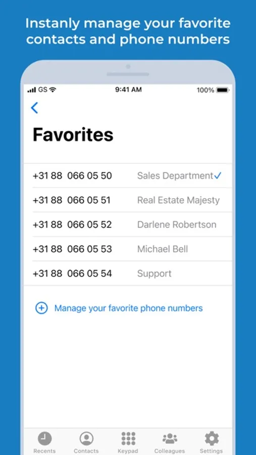 Create and share contacts with your co-workers so everyone has full access to business contacts, such as suppliers. Integrate your mobile phone contacts for optimized accessibility.