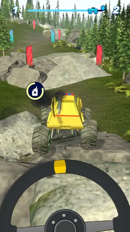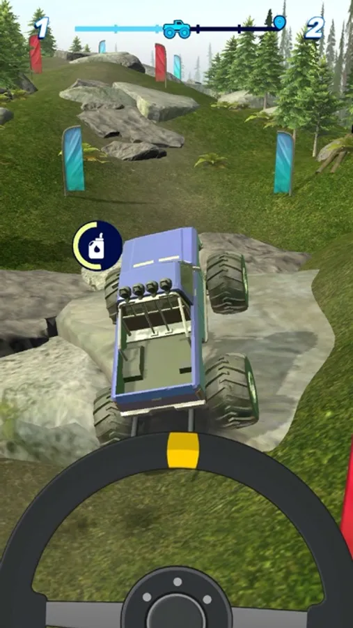 Hop into the driver's seat and traverse through different terrains by crawling your way to victory over the rocks, across the suspended bridges and knocking down fence posts that stand in your way.