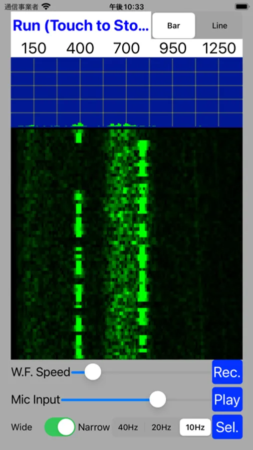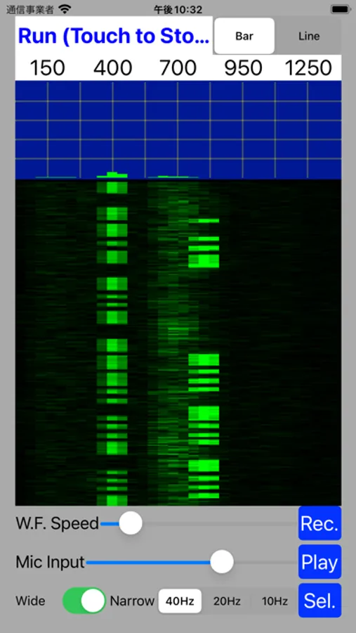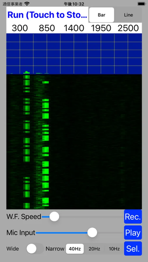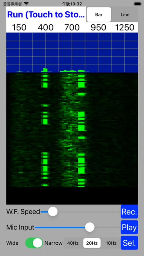 This is an app for amateur radio operators with a narrow band of audio frequency, spectrum scope & waterfall display.