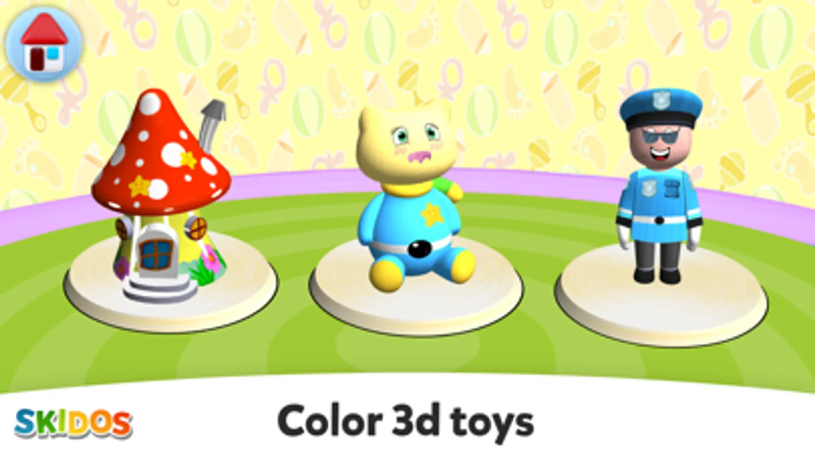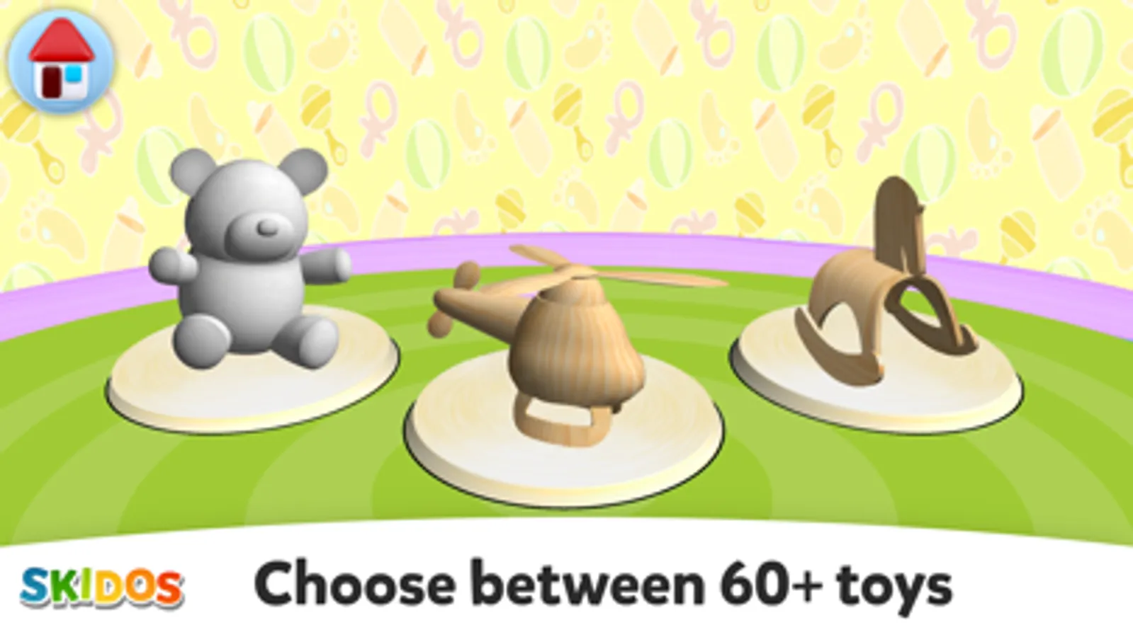 SKIDOS Toy Brush is an educational 3d colouring game that allows kids aged 2-5 to express their creativity. To start, choose between 60+ toys of different material (wood, fabric or ceramic), and paint them in the way you prefer. To finish, you can also add cute stickers to your creation! The possible combinations are endless.