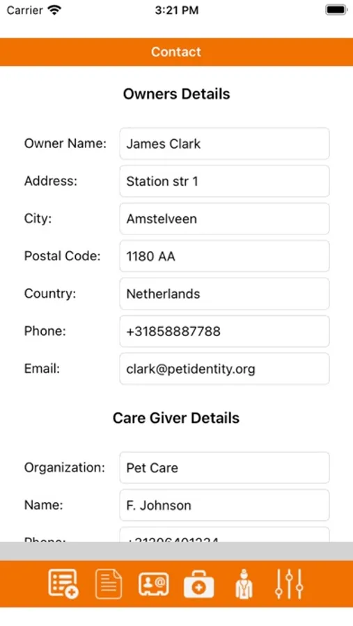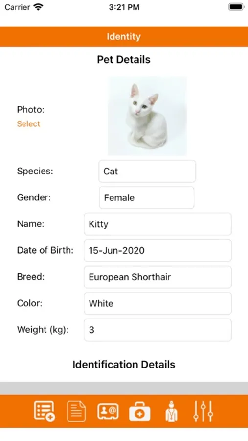Upon signing up to the Pet Identity program using Pet-ID app, pets owners and caregivers will be able to administer and maintain information (pet profile) about their pets. This information contains pets records including identity, owners and caregivers contact details, medical and vaccinations, treatment and training, veterinarian consults history.