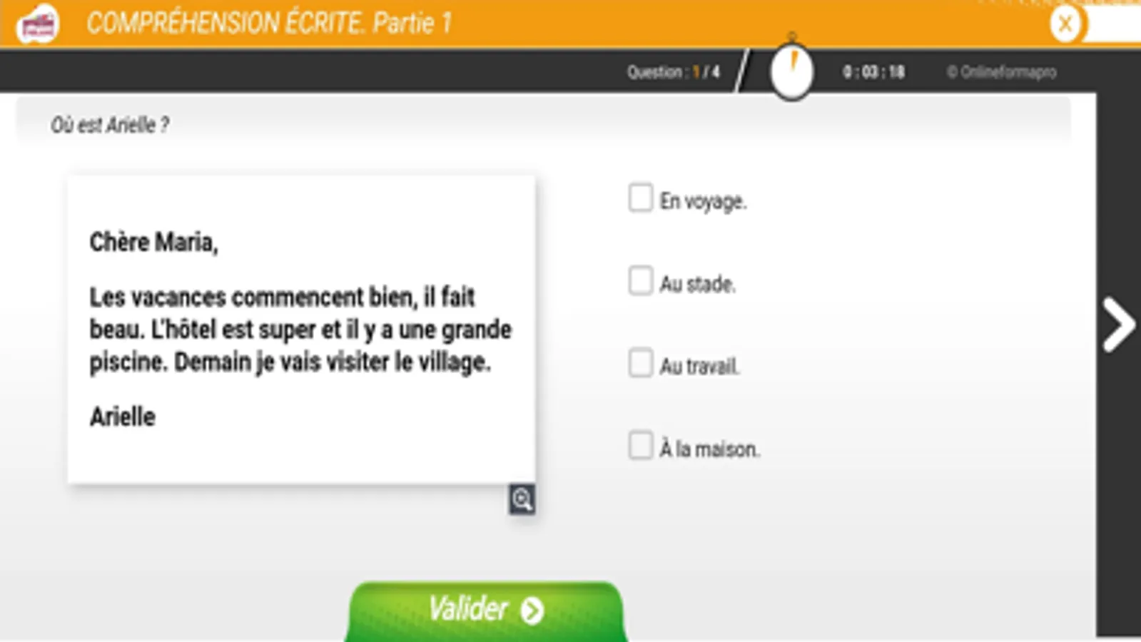 Développé par l’Agence Universitaire de la Francophonie (AUF) et France Éducation international, le test APPRENDRE Ev@lang disponible sur application mobile est un test d’entraînement qui évalue la compétence en français sur trois activités langagières (compréhension orale, compréhension écrite et grammaire & lexique). Il est destiné aux adultes, et plus particulièrement aux enseignants des pays bénéficiaires du programme APPRENDRE de l’AUF. Les résultats sont exprimés pour chaque activité langagière selon les niveaux du Cadre Européen commun de référence pour les langues (CECRL) et accompagnés de brèves recommandations. Ce test a été développé sur le modèle du test Ev@lang de France Éducation international.
