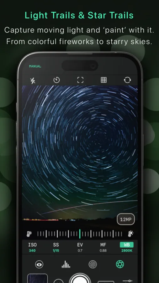 • Light trails mode: transform busy roads and starry skies into stunning rivers of light