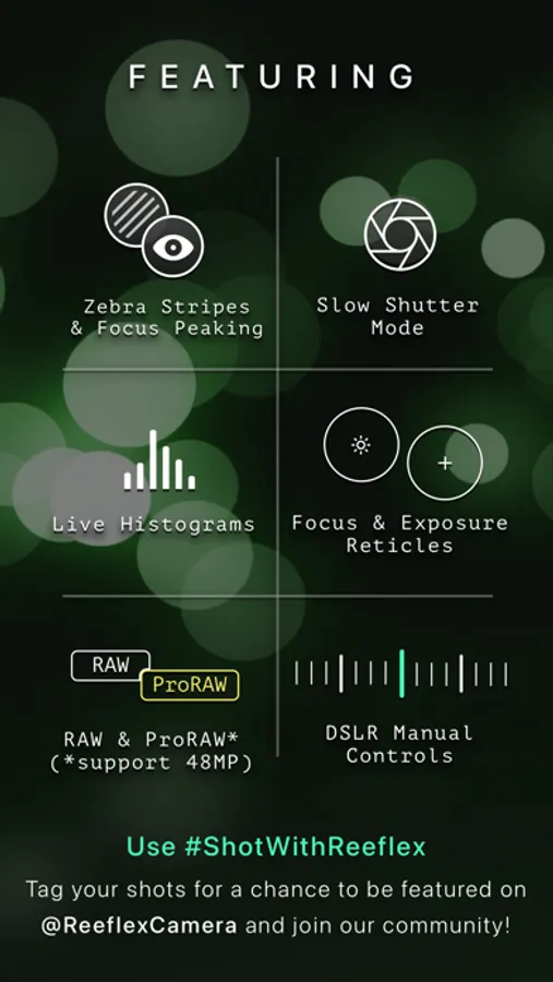 Reeflex is the best photography app on the App Store designed for enthusiasts, creatives, and professional photographers! The app provides pro-level DSLR features directly on your iPhone while being extremely intuitive and easy to use.