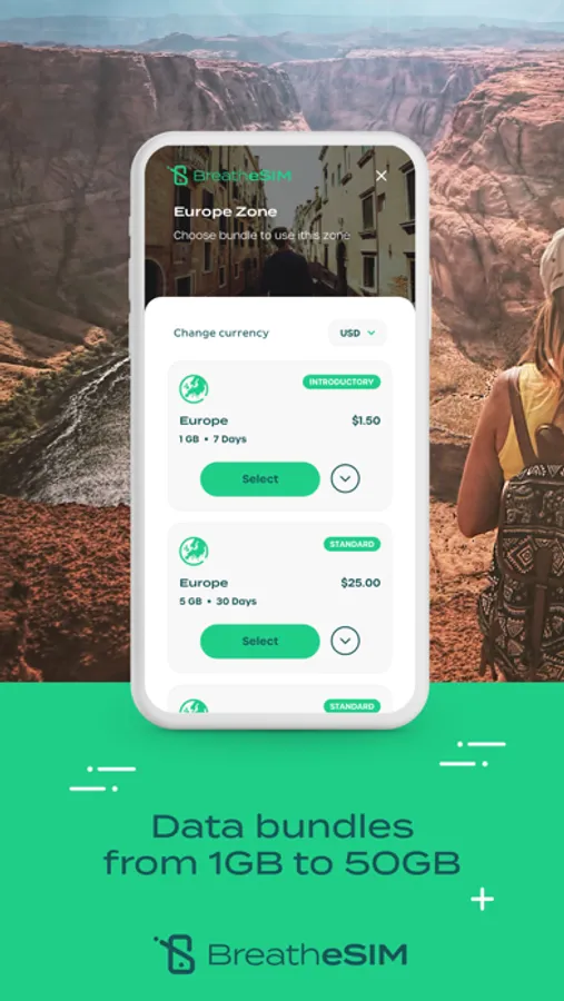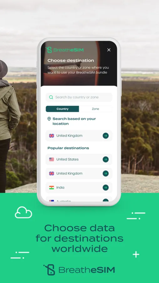 eSIM is a better, more convenient, and more environmentally friendly way for you to connect - no need to buy an eSIM at your destination, no more messing around opening the SIM tray, no swapping little pieces of plastic - simply download the BreatheSIM app, sign-up, select your destination and bundle, and you're good to go.