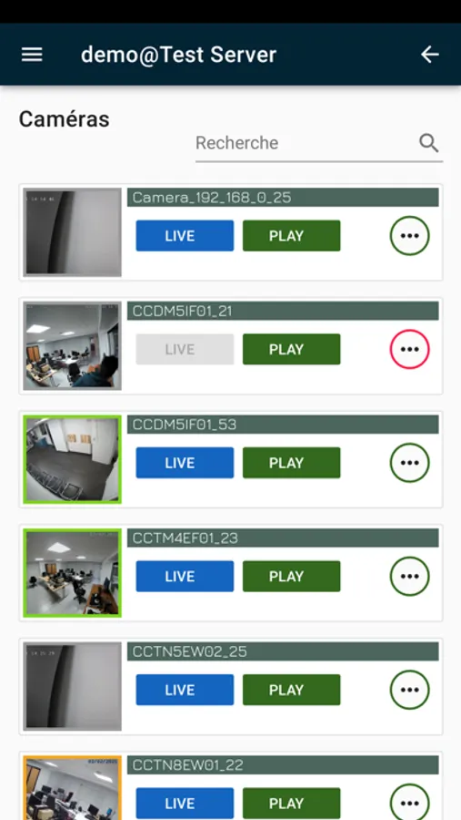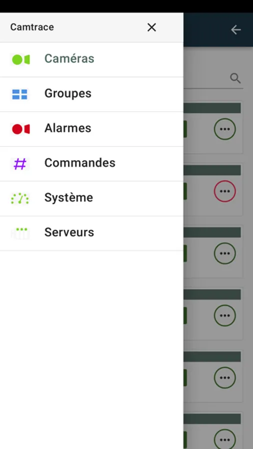 With CamTrace Mobile V2 you can: view cameras, control motorized cameras (PTZ), access alarms, play recordings, and check the status of servers and cameras.