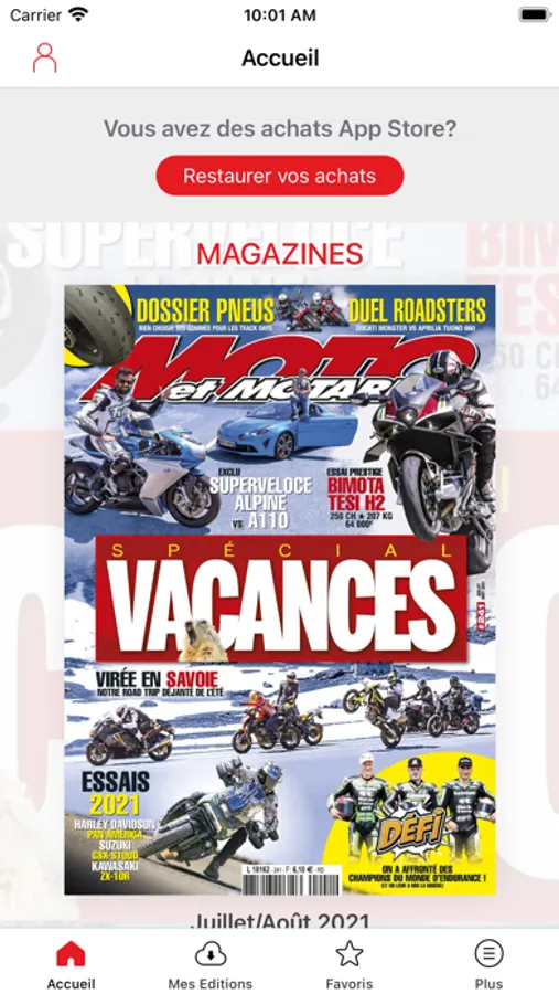 Suivez toute l’équipe du magazine Moto et Motards à travers leurs essais nouveautés, leurs comparatifs motos, leurs virées motos et ce, tous les deux mois. Moto et Motards ce n’est pas qu’une ambiance motarde de folie c’est également de nombreux dossiers techniques, des interviews, des reportages, des teste équipements motos, test pneumatiques etc. …
