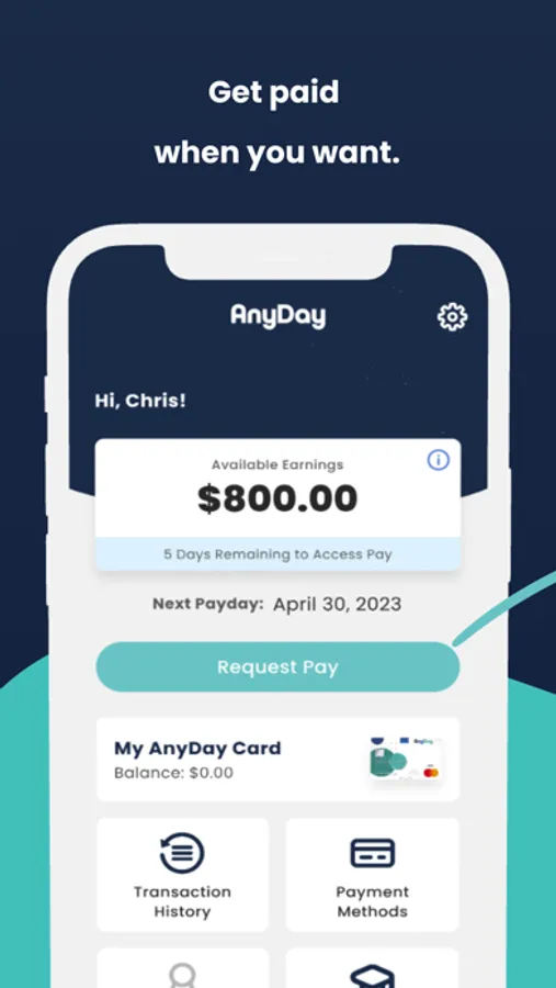 AnyDay has built an intuitive platform to enable employees worldwide to instantly access a portion of their earned wages without having to wait until payday. It is a simple and effective solution to a complex problem that many workers face today. With AnyDay, employees can have immediate access to accrued pay anytime, any day of the week, without any risk.