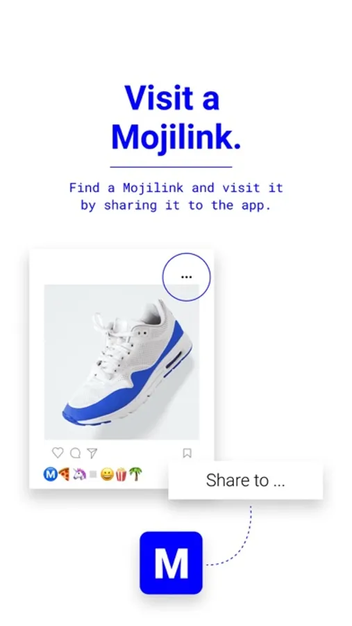 On Instagram, tap the options menu (three dots) in the top right corner of a post, hit "Share to…“ and choose the Mojilink App icon. — Boom! The Mojilink opens directly within Instagram!