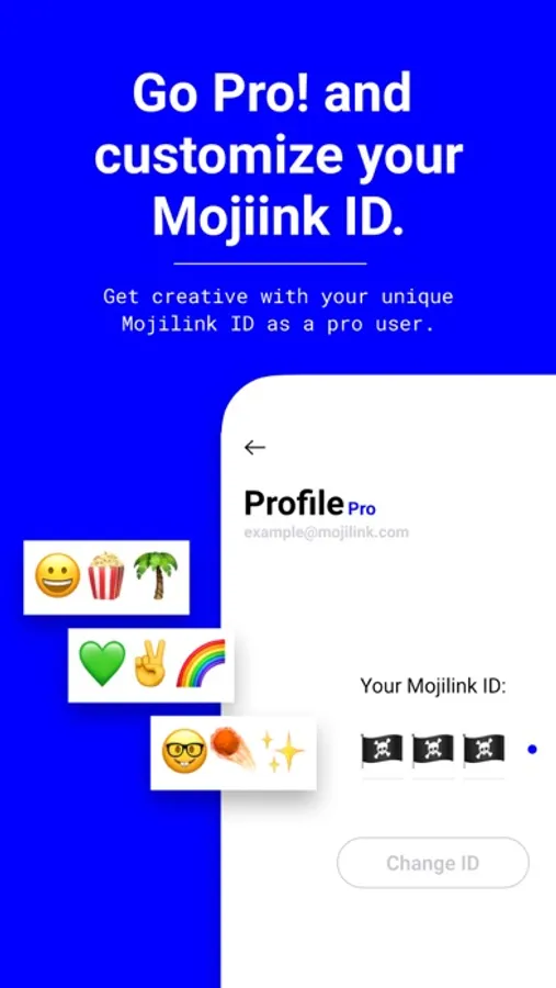 Go Pro! - Mojilink is free forever. But if you want to personalize your Mojilink ID (username) or become more creative with your Mojilinks please subscribe to Mojilink Pro.