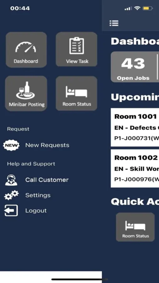 This app is intended for hotel staff to create job, manage jobs, get notify from guest, real-time job tracking, monitoring, escalation management, manage the history of job, room status and minibar posting.