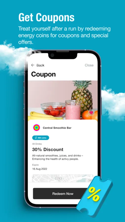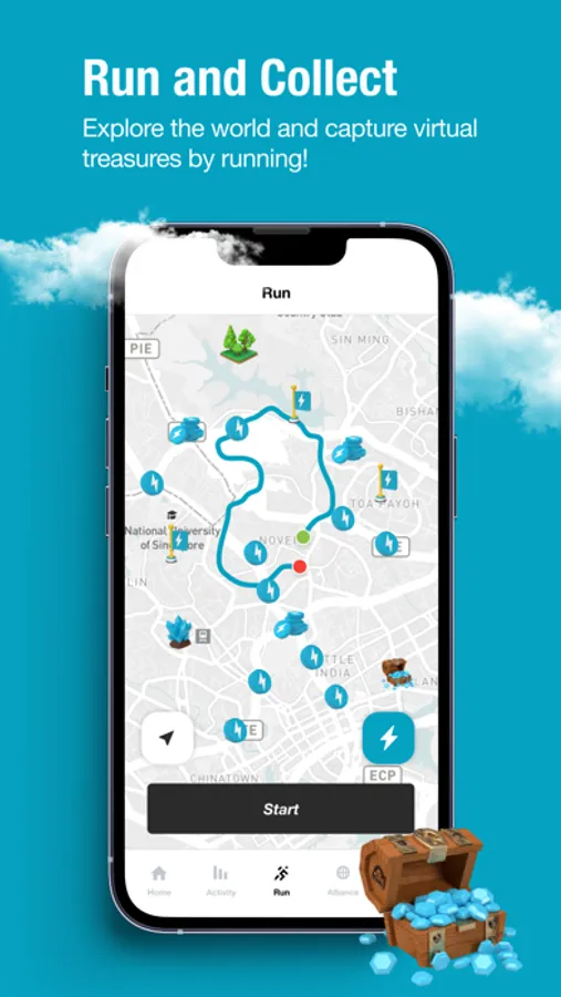 • Collect virtual treasures spawning on map as you run! • Get rewarded with special offers and promotions.