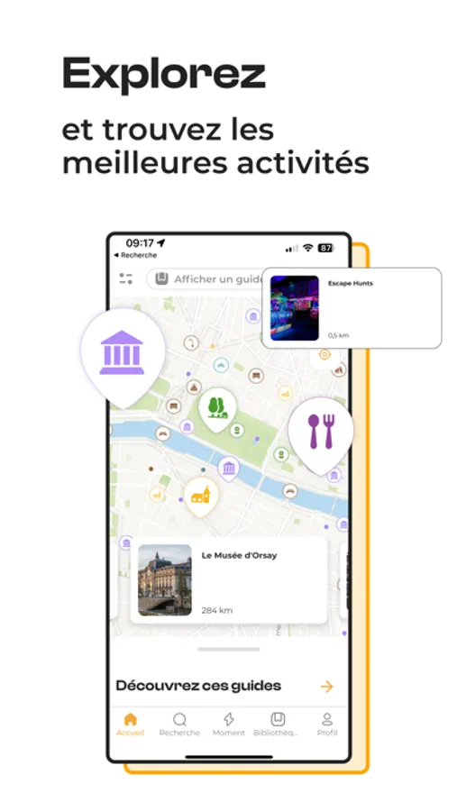 Vivez des expériences uniques près de chez vous ou ailleurs et laissez-vous guider par les recommandations d’experts locaux pendant votre voyage. Découvrez des événements ou trouvez des activités pour tous les âges et tous les goûts, directement depuis l'application.