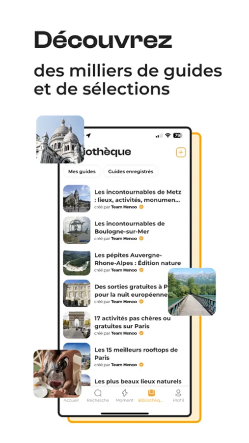 Transformez vos séjours en expériences inoubliables avec Henoo, votre guide touristique et compagnon de voyage. Explorez la France comme jamais auparavant et partagez vos aventures.