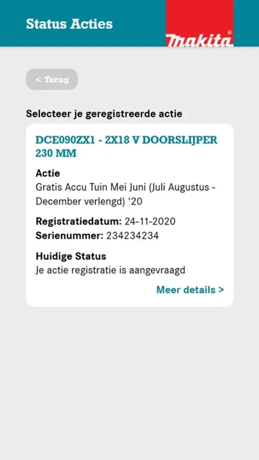 Een volledig nieuw ontworpen Mijn Makita (versie 1.0) is vanaf nu beschikbaar. De nieuwe app is simpel en intuïtief. In deze versie kan een profiel aangemaakt worden en kan registratie plaats vinden voor een actiecampagne. Hiermee is het eenvoudig de status van de aanvraag te volgen. In de komende versies zal het mogelijk zijn om bijvoorbeeld uw garantie registratie te raadplegen, uw reparaties te volgen, snel producten te bestellen en uw bestellingen te traceren. Eenvoudig, snel en betrouwbaar.