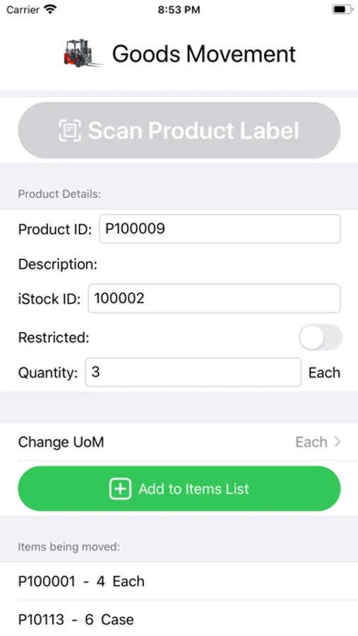 Simply and quickly perform goods movements in your warehouse on your iPhone, iPad or iPod. The app supports scanning logistics area and product label barcodes/QR codes to effectively remove any manual data input.