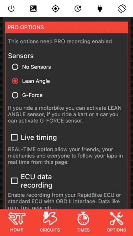 RaceTime can record speed, trajectory, lean angle and G-Force.