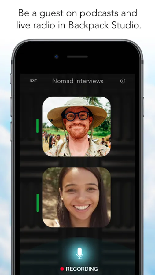 Backpack Live allows you to co-host or be a guest on podcasts and live radio streams created in Backpack Studio. Just grab some headphones, and enter the room code from your host to begin recording in studio quality. Visit http://backpackstudioapp.com for more info.
