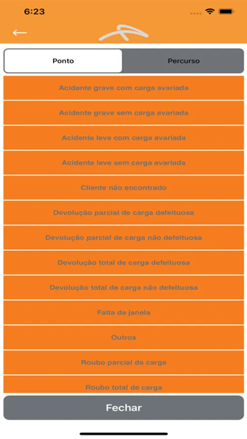 -Ocorrência ao clicar em uma entrega não finalizada ele pode gerar uma ocorrência o caso o mesmo ocorra, basta apenas clicar em ocorrência e depois selecionar a ocorrência e clicar em fechar, na tela de entregas o botão ficará amarelo.