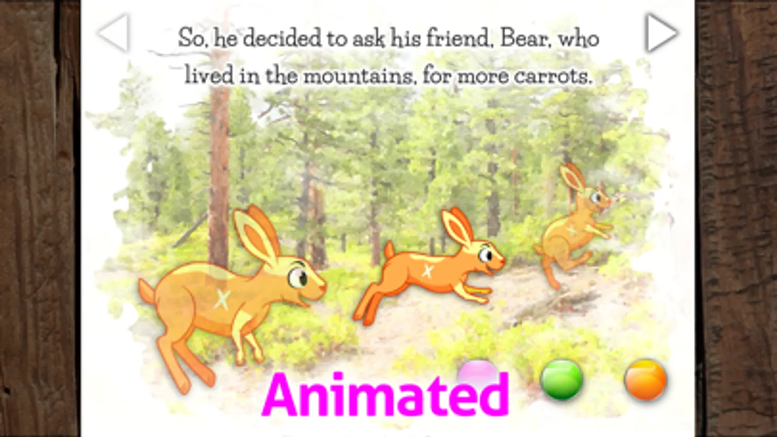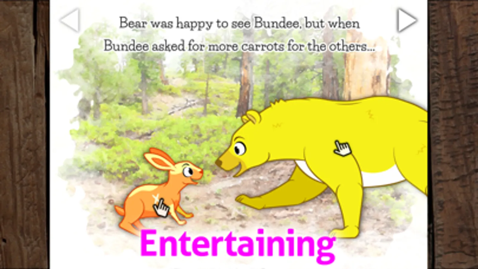 • Wildlife animal friends in this illustrated children's app - rabbits and bear.
