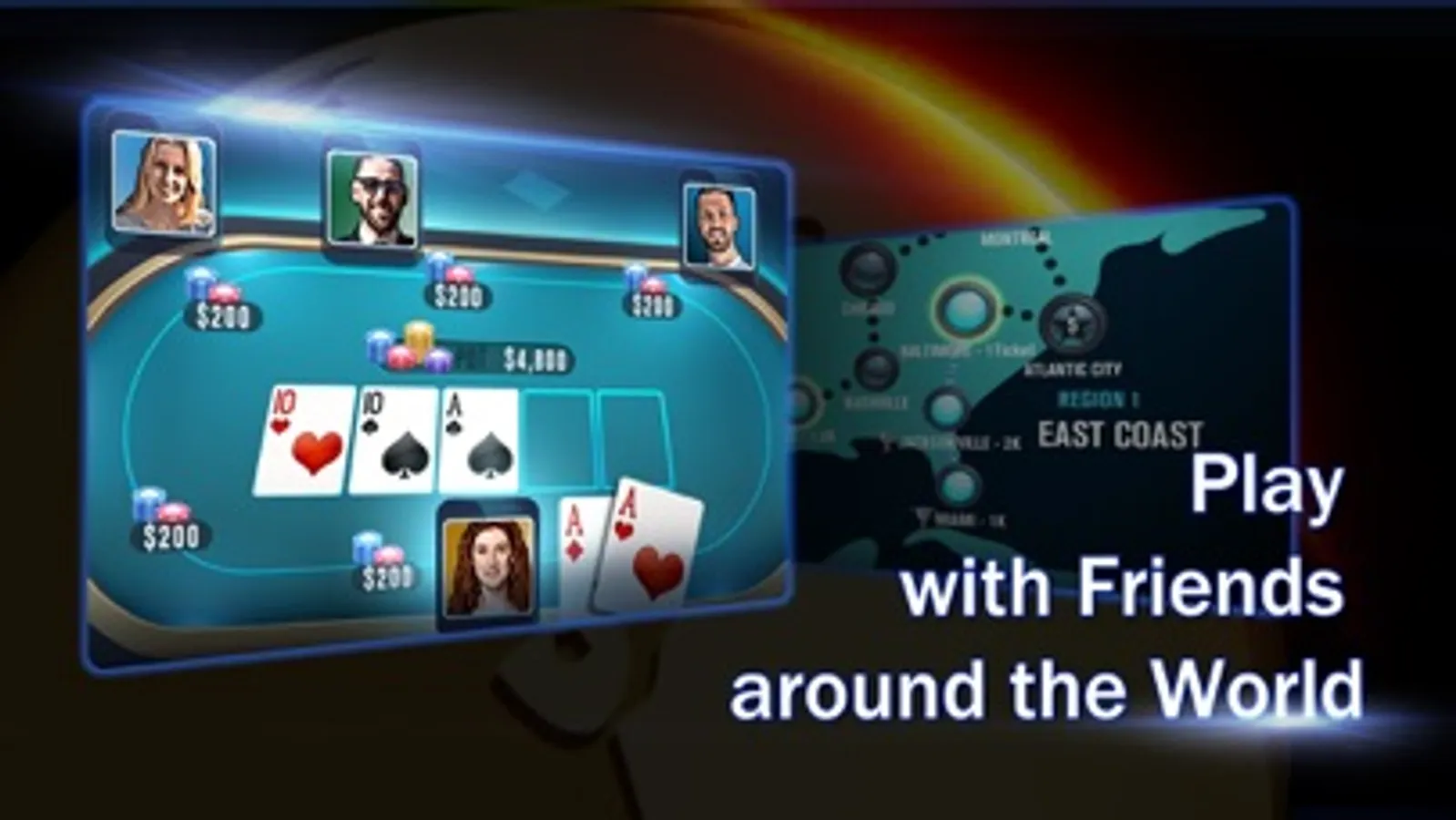 -Free gifts! Download the game and immediately get 20,000 poker coins!