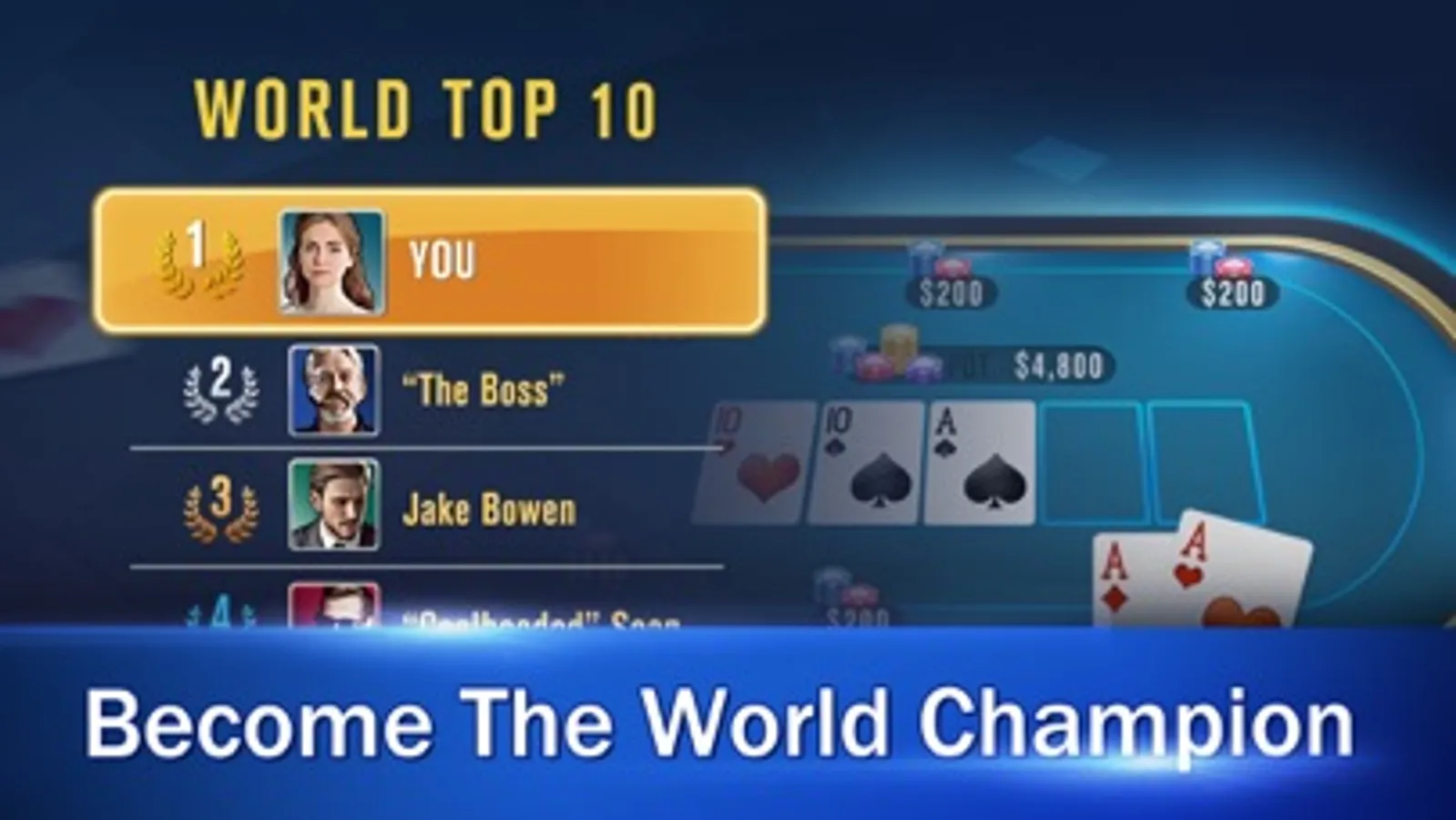 The world champion poker is created by the excellent team of poker-ai this vast poker game. You travel around the world famous cities. Fight against ferocious players from all over the world-Have you ever yearned to play poker in "Oriental Monte Carlo" Macau? Or visit the legendary and majestic Monaco Casino? Or even enter the Bellagio Hotel on the Las Vegas Strip to feast your eyes on? This time your chance has finally come! Everyone has only one goal: to be the World's Poker Emperor