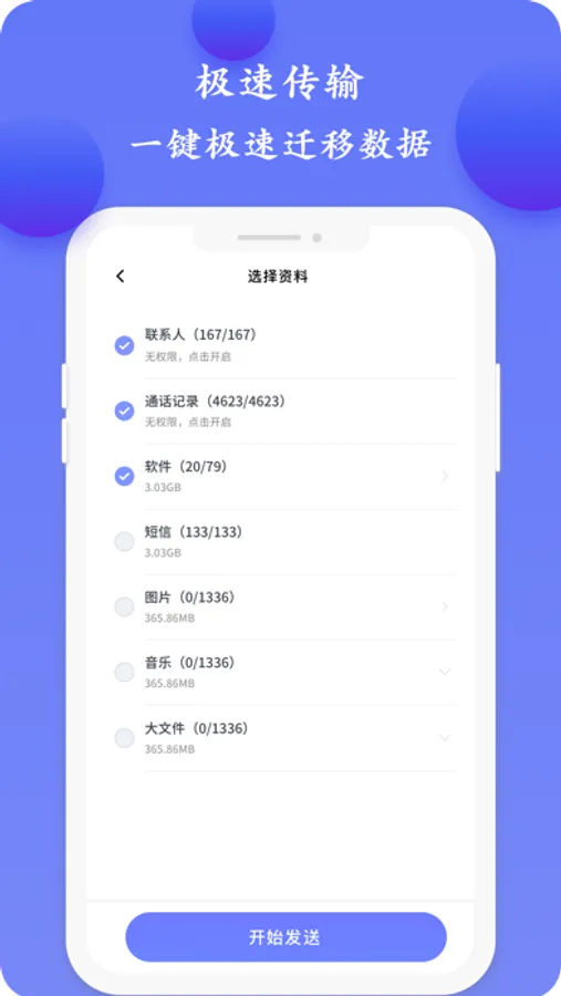 步骤3:旧机扫描新机二维码,连接成功后选择传输文件开始发送,极速完成传输!