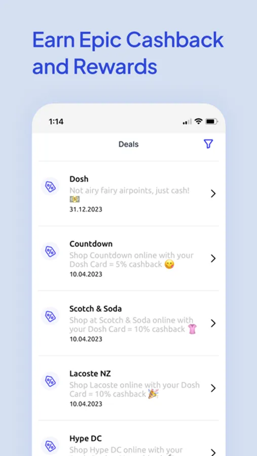 - Access additional cashback deals from your favourite retailers in the Dosh app.