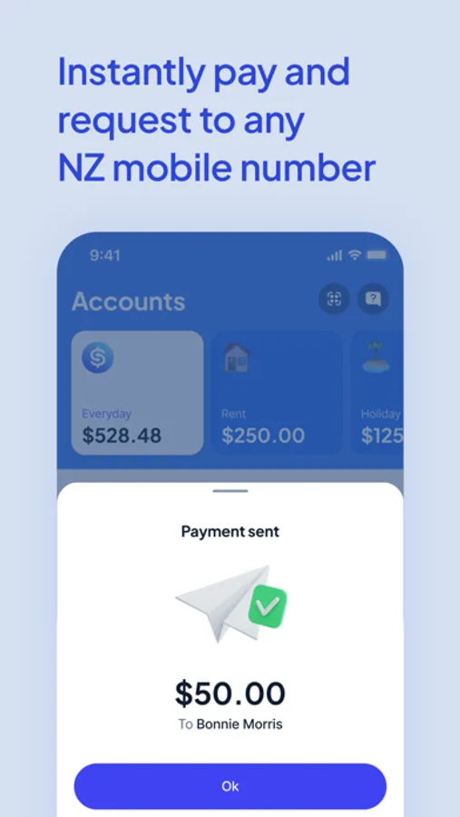 - Easily pay into a New Zealand bank account with reference details to pay bills.
