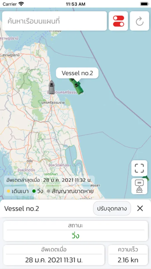 แสดงตำแหน่งเรือประมงบนแผนที่พร้อมบอกสถานะของเรือแบบเรียลไทม์ เช่น จอด เดินเบา วิ่ง เป็นต้น