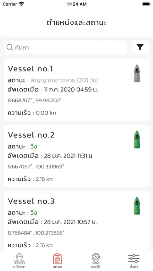 - ดูประวัติเส้นทางการเดินเรือย้อนหลัง