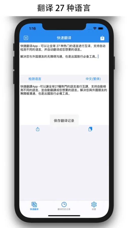 Quick Translation App - allows translation of 27 popular languages around the world, supports automatic detection of different languages, and automatically translates into the language you want.