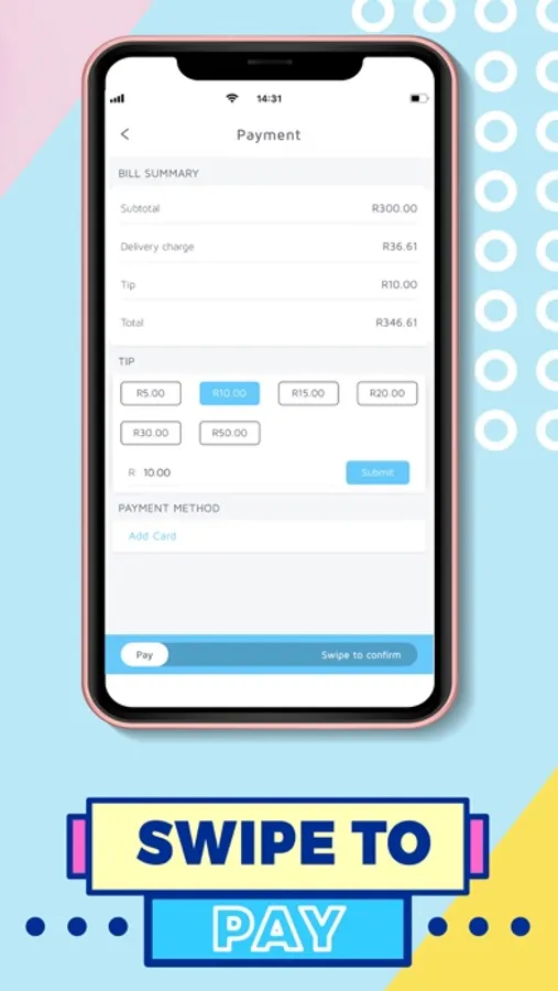 4. Swipe to confirm your order and pay