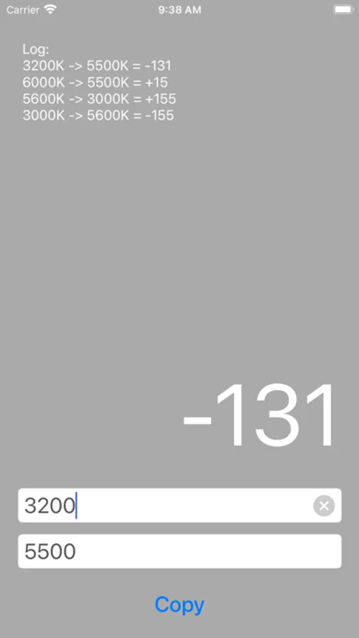 Mired shift calculator used in cinema industry for matching light temperature in Kelvins between different light fixtures or ambient light.