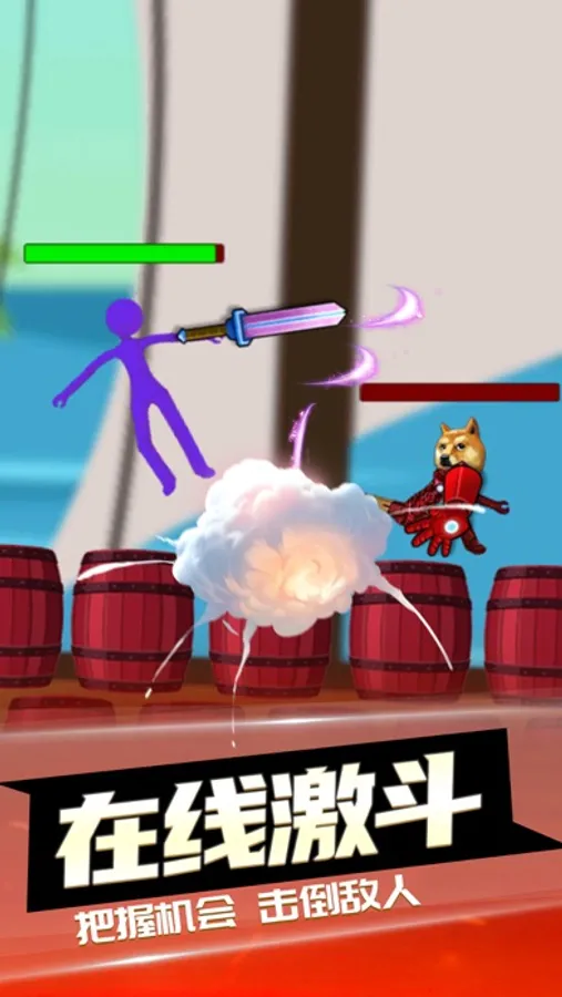 《激战火柴人》是一款超好玩的火柴人动作格斗游戏。好斗的火柴人们一定要通过一场比武来确定谁是最强王者。游戏操作非常简单,通过虚拟摇杆控制火柴人的移动,通过灵活的移动争取有利的攻击位置将敌人击败。