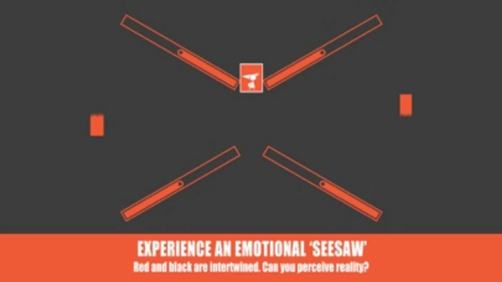 Puzzle Levels: The level process is a metaphor for the condition "bipolar disorder". The main components of the scene, red and black, fade into the background of the same color, just as people wrapped in extreme emotions often fail to perceive the whole picture. The red and black worlds in the game refer to the "manic" and "depressive" mood poles of bipolar disorder, and the characters are in a world divided by two levels of emotions.