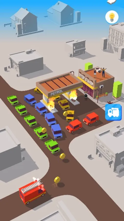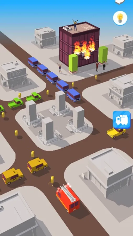 The supermarket is on fire! You need to get the fire engine to the fire site as soon as possible, but the road is very congested. Use your wisdom to guide the vehicle out of the road.