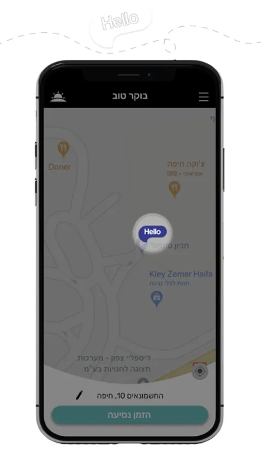 צפו במיקום שלכם על המפה והזמינו נסיעה.