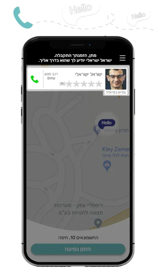 תקבלו התראה על הזמנתכם ואת פרטי הנהג שקיבל את הנסיעה.