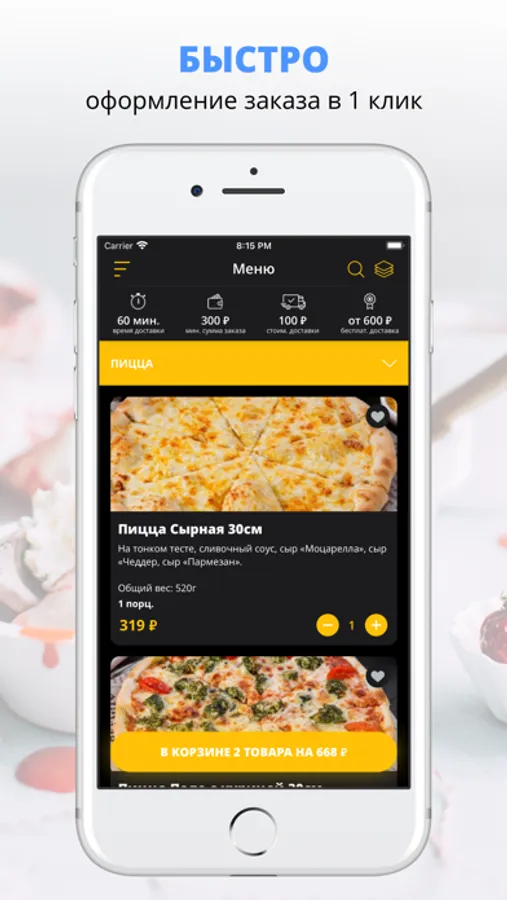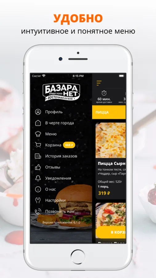 Заказывайте Ваши любимые блюда у нас, и Вы останетесь довольны качеством сервиса. У нас работают лучшие повара, а курьеры приятно порадуют вежливостью и быстрой доставкой.
